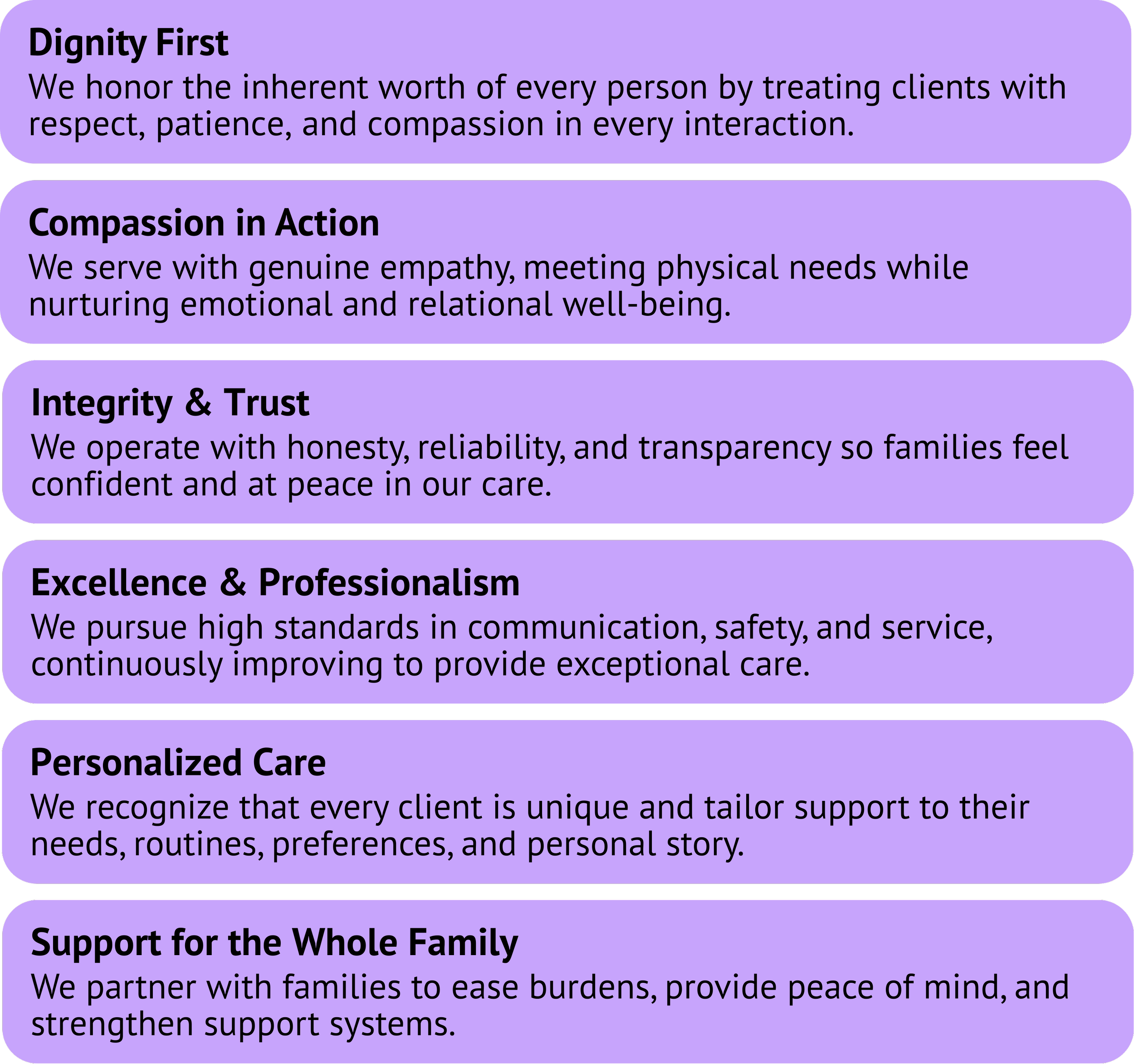 Her legacy inspires our commitment to preserving dignity, fostering independence, and showing up with compassion and faithfulness every single day. We dedicate our work to honoring her life and to serving others with the same care, joy, and generosity she gave so freely.